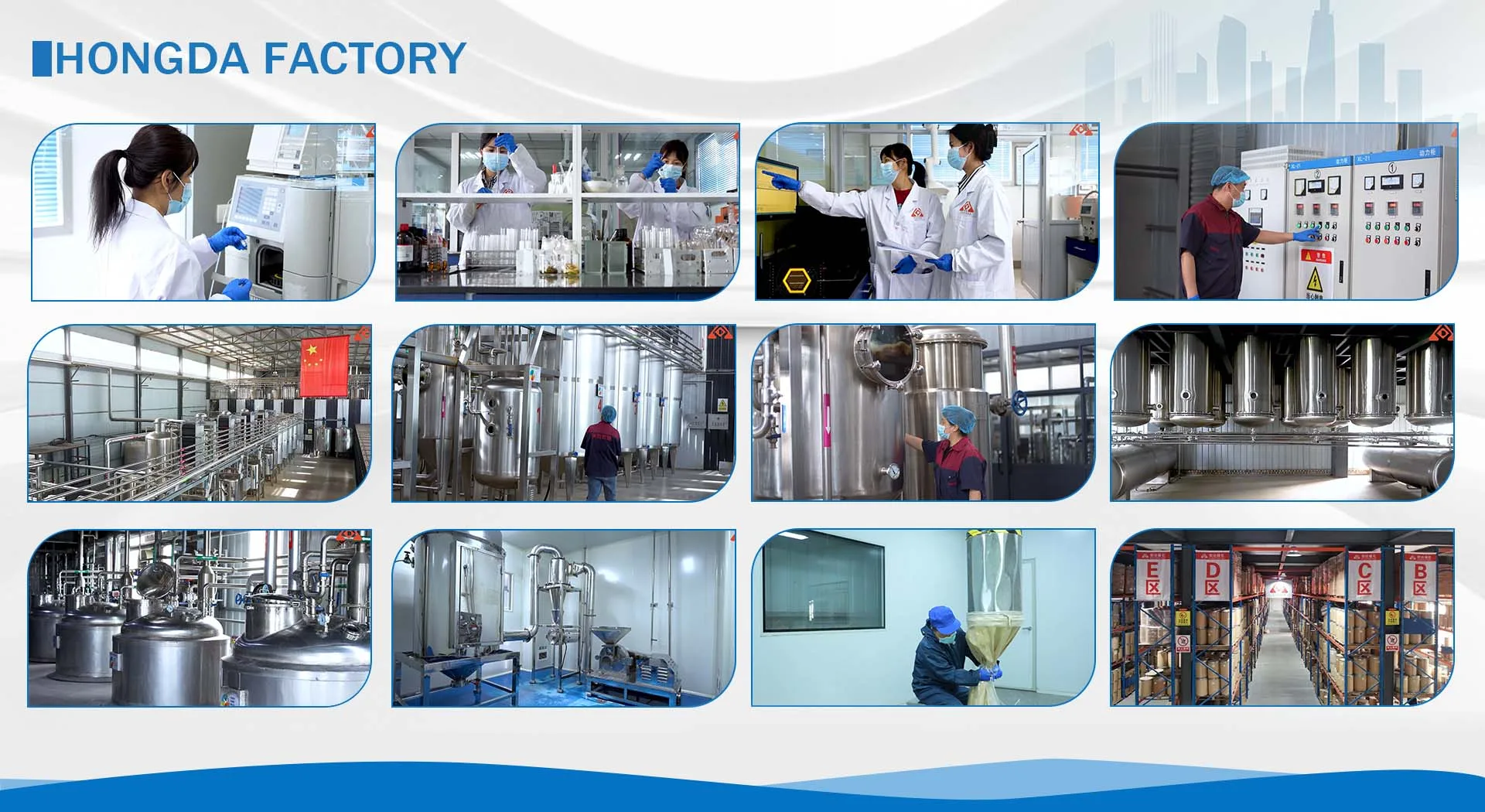 Shaanxi Hongda Phytochemical Co., Ltd. was established in 2003. It is a manufacturing enterprise that has passed ISO system certification, Jewish certification, halal certification, BRC certification and organic certification. It is committed to the identification, research and development and production of plant extracts and their derivatives. We have a production workshop constructed by standard organization. The production process is fully enclosed and the production management is carried out in strict accordance with SOP of each position. In addition, Hongda is FDA registered, with Kosher and halal certification and certificated by ISO22000 and HACCP. All our processes and systems are accredited with applicable agencies that are listed below.